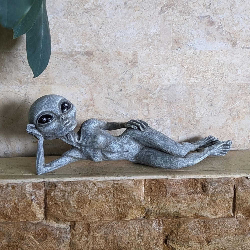 1pc Alien Resin Statues Figurine; Halloween Creative Statues; Home Decor Garden Decoration
