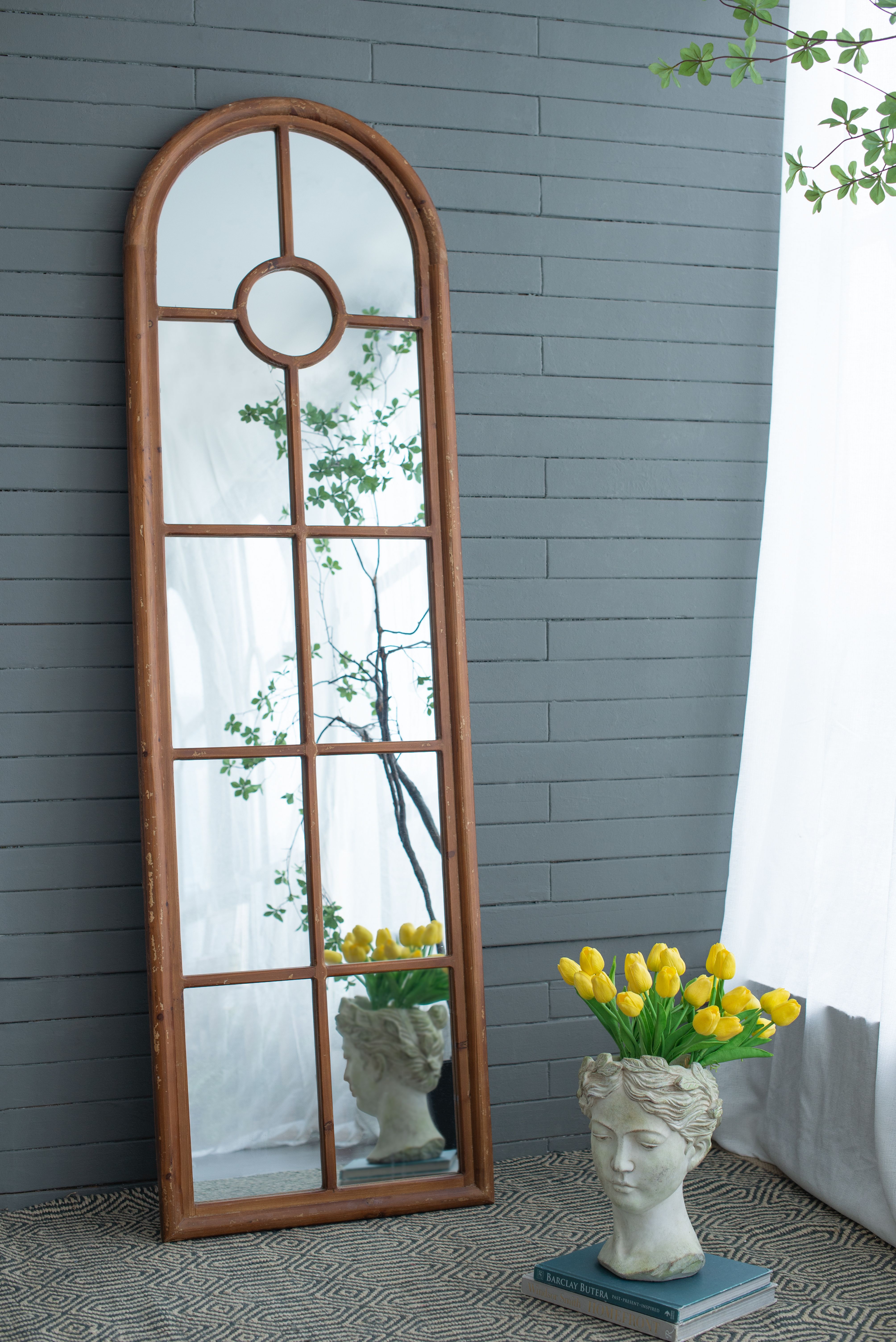 24x79" Half-Round Elongated Mirror with Decorative Window Look Classic Architecture Style Solid Fir Wood Interior Decor 24x79" Half-Round Elongated Mirror with Decorative Window Look Classic Architecture Style Solid Fir Wood Interior Decor 24x79" Half-Round Elongated Mirror with Decorative Window Look Classic Architecture Style Solid Fir Wood Interior Decor