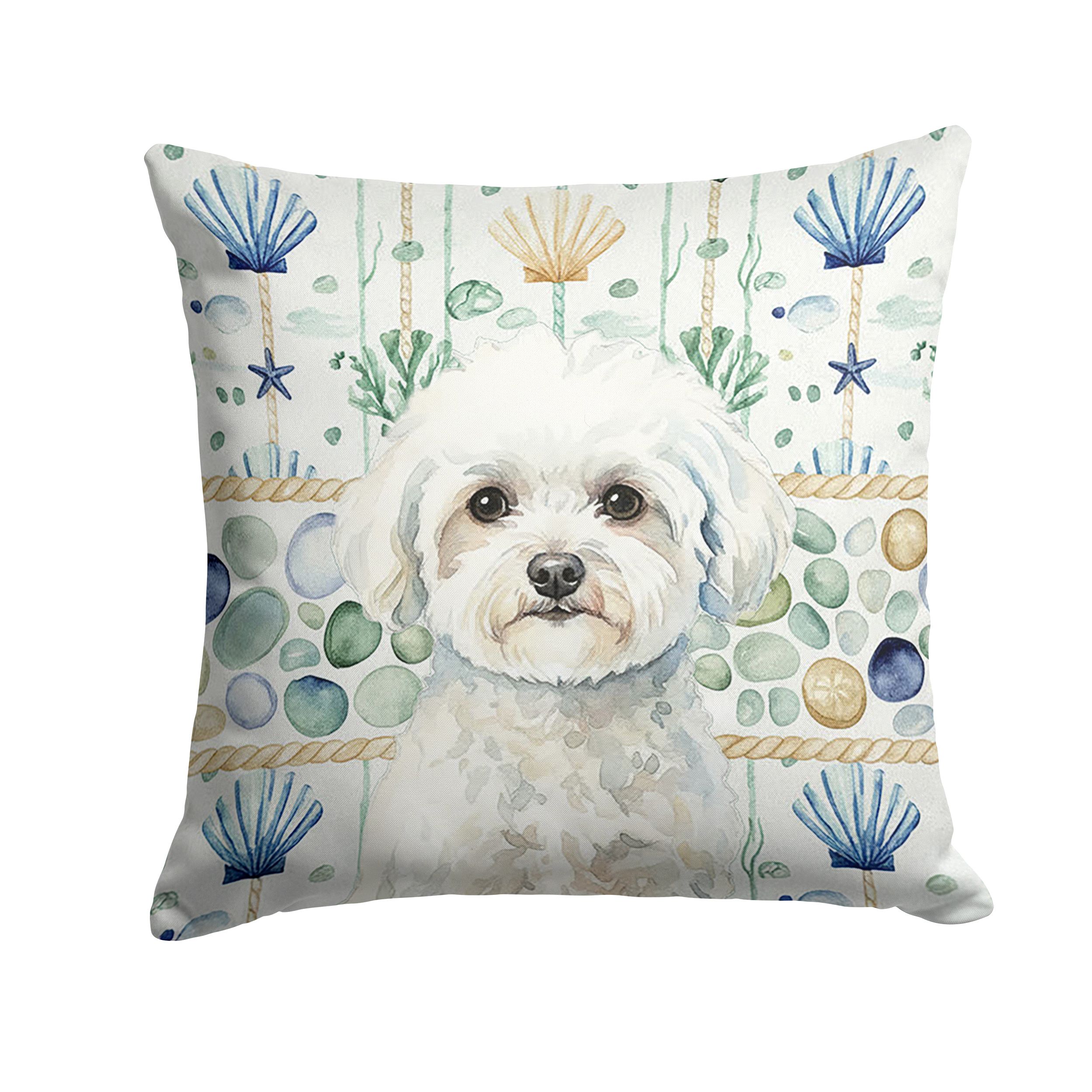 Bichon Frise Coastal Sea Glass Throw Pillow Decorative Indoor Outdoor Accent Cushion for Couch, Bed or Patio, 14Hx14W