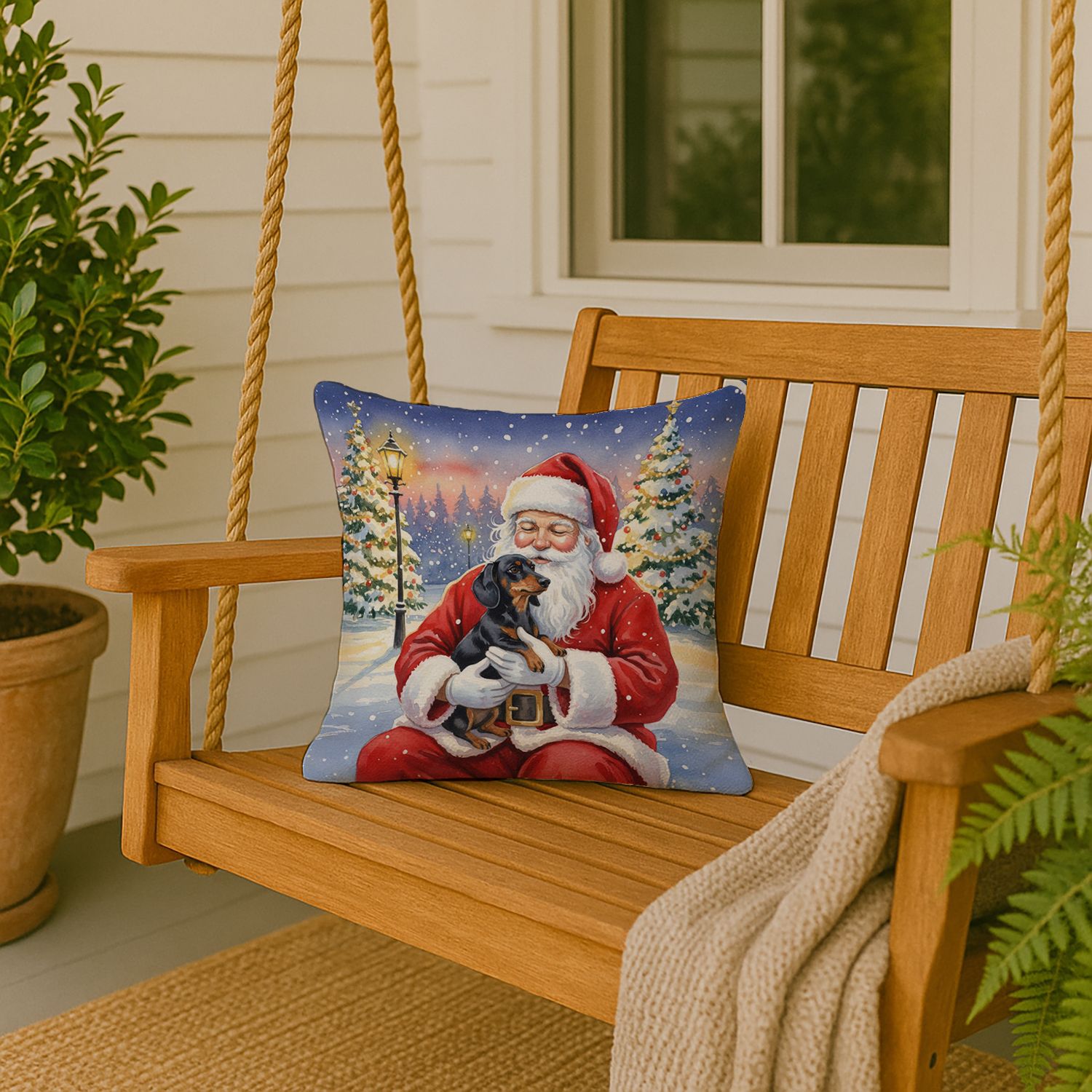 Home > Black and Tan Dachshund with Santa Claus Throw Pillow Decorative Indoor Outdoor Accent Cushion for Couch, Bed or Patio, 18Hx18W