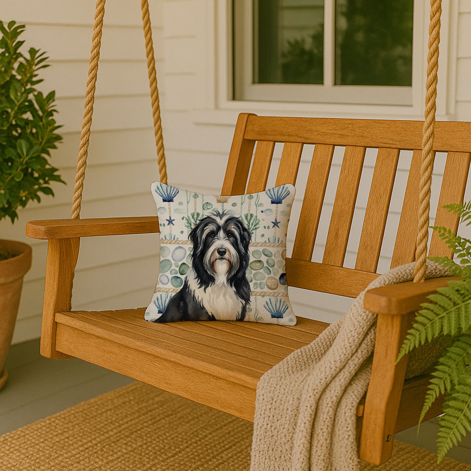 Home > Black Bearded Collie Coastal Sea Glass Throw Pillow Decorative Indoor Outdoor Accent Cushion for Couch, Bed or Patio, 14Hx14W