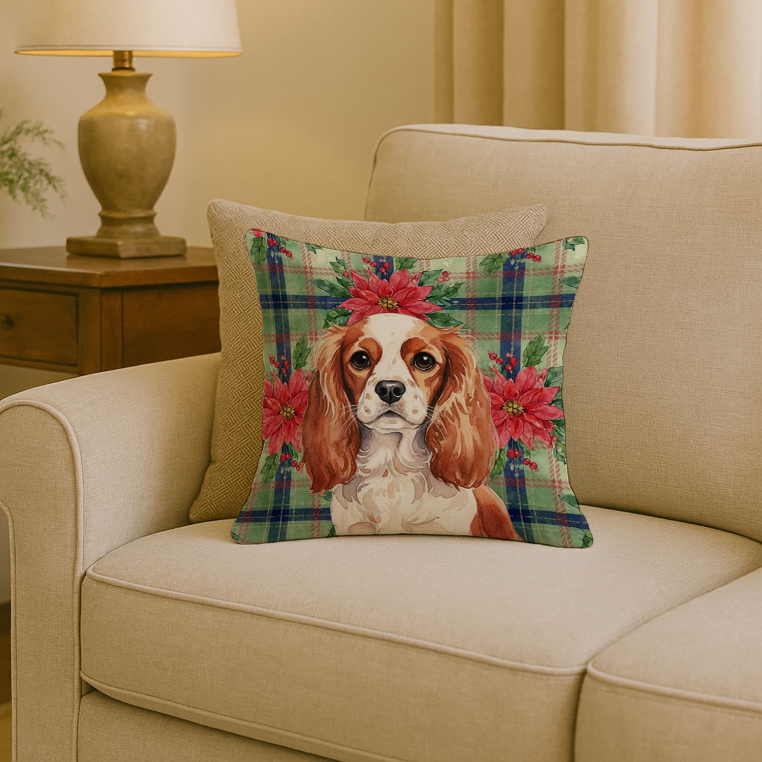 Blenheim English Toy Spaniel Christmas PoinsettIas Throw Pillow Decorative Indoor Outdoor Accent Cushion for Couch, Bed or Patio, 18Hx18W Blenheim English Toy Spaniel Christmas PoinsettIas Throw Pillow Decorative Indoor Outdoor Accent Cushion for Couch, Bed or Patio, 18Hx18W Blenheim English Toy Spaniel Christmas PoinsettIas Throw Pillow Decorative Indoor Outdoor Accent Cushion for Couch, Bed or Patio, 18Hx18W