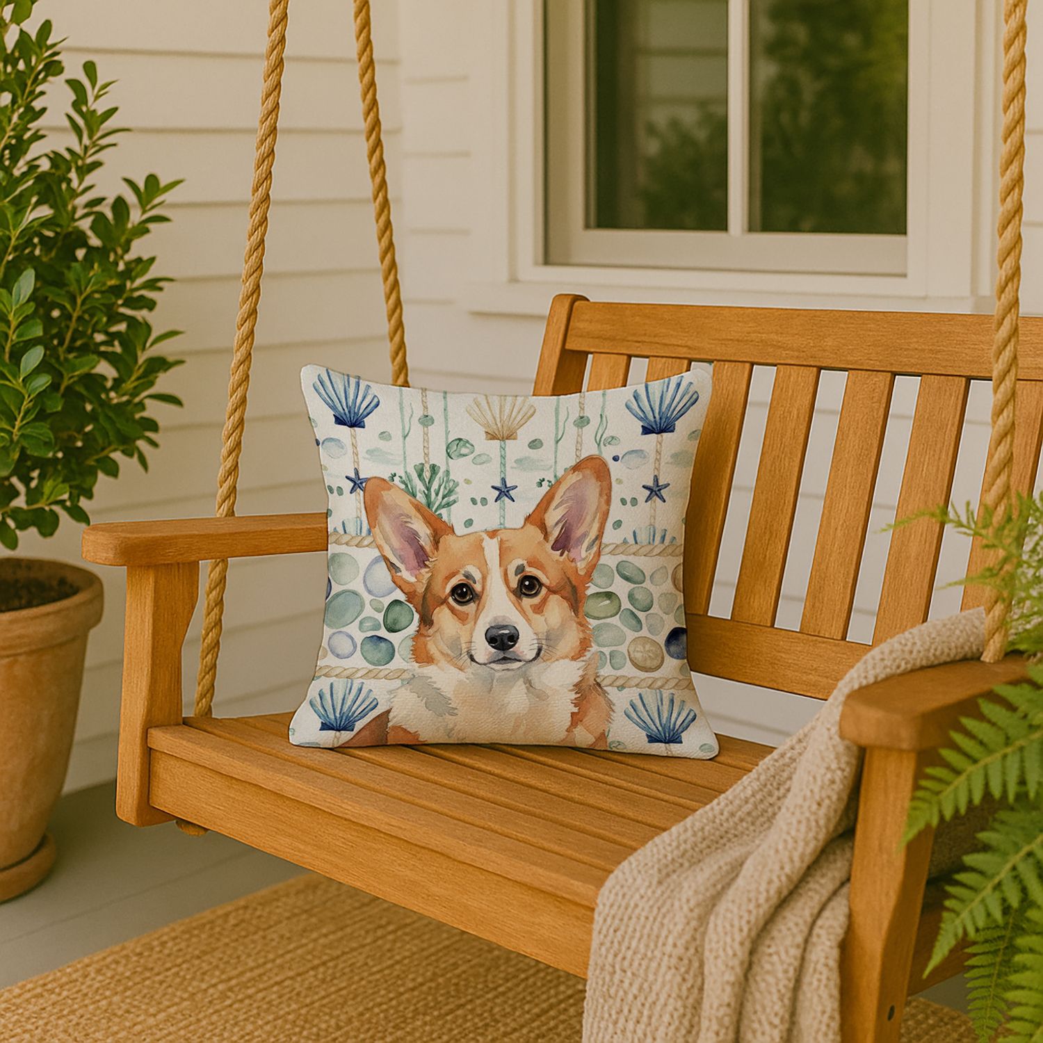 Corgi Coastal Sea Glass Throw Pillow Decorative Indoor Outdoor Accent Cushion for Couch, Bed or Patio, 18Hx18W