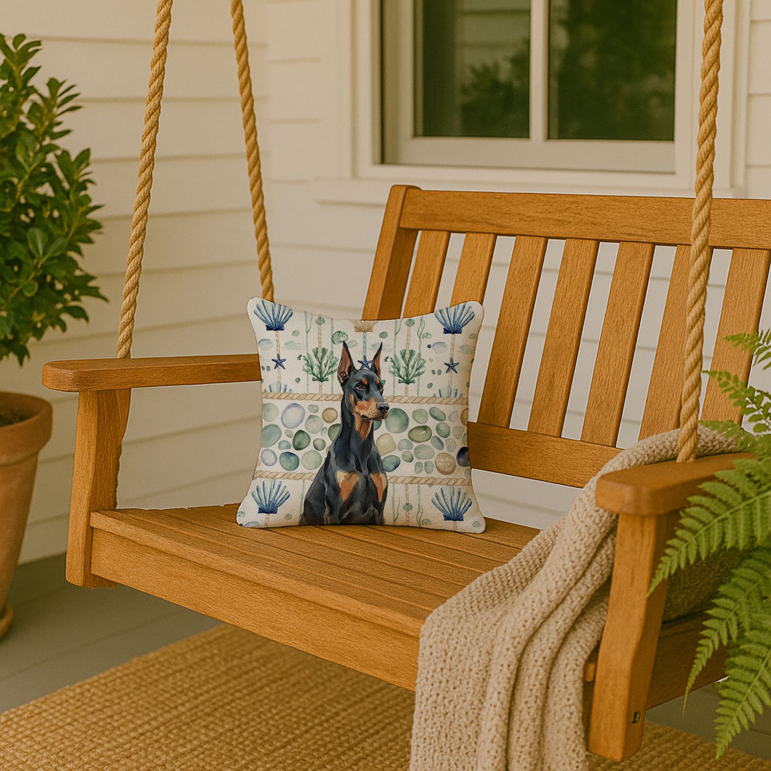 Doberman Pinscher Coastal Sea Glass Throw Pillow Decorative Indoor Outdoor Accent Cushion for Couch, Bed or Patio, 14Hx14W