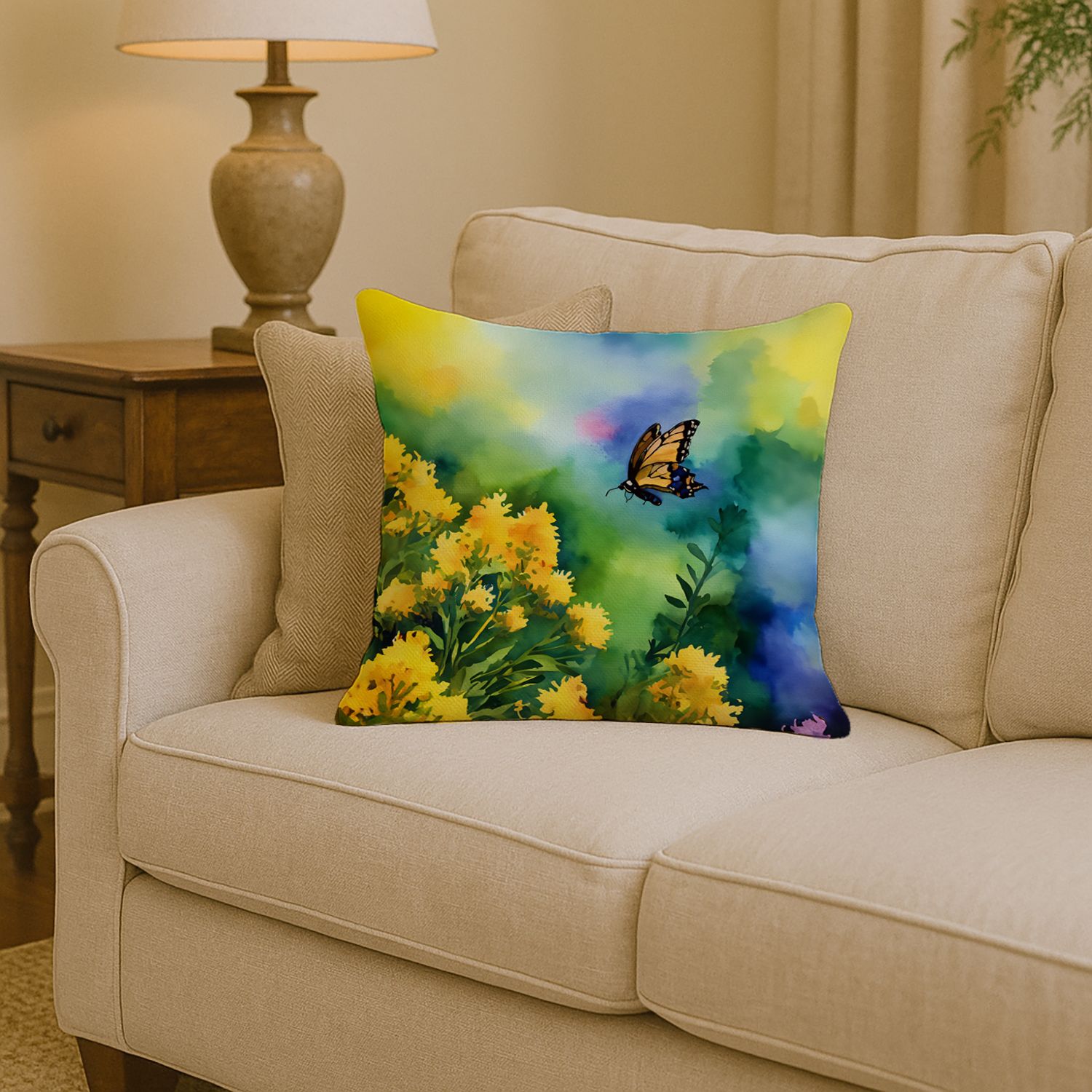 Kentucky Goldenrod in Watercolor Throw Pillow Machine Washable, Indoor Outdoor Decorative Pillow for Couch, Bed or Patio, 14Hx14W