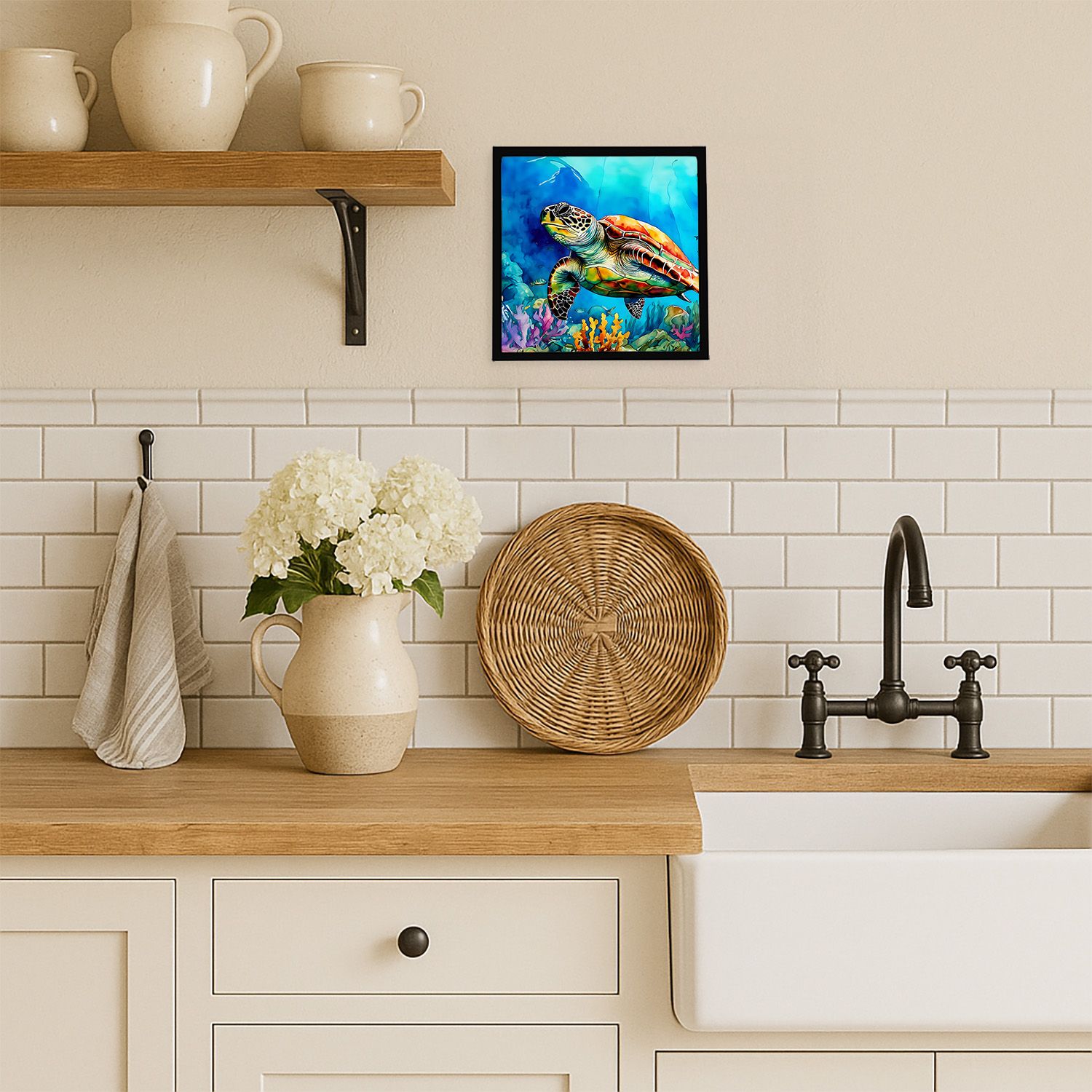 Home > Loggerhead Sea Turtle Framed Metal Print Bathroom, Kitchen, Office, Home Decor Wall Art Ready to Hang, Square, 8X8