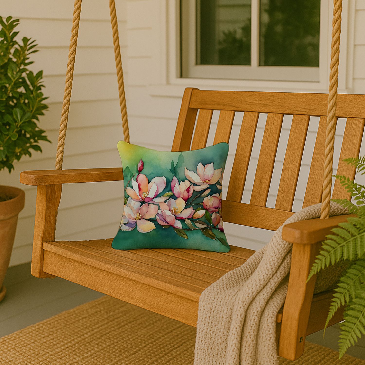 Louisiana Magnolias in Watercolor Throw Pillow Machine Washable, Indoor Outdoor Decorative Pillow for Couch, Bed or Patio, 14Hx14W