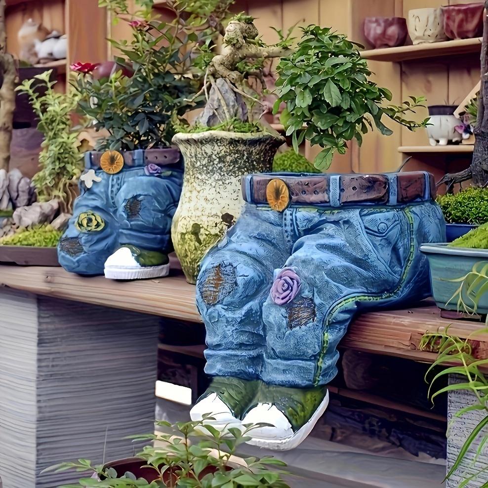 1pc Funny Indoor And Outdoor Flower Pots Resin Denim Pants Ornaments Creative Flower Pot Decoration Crafts Retro Garden Decoration
